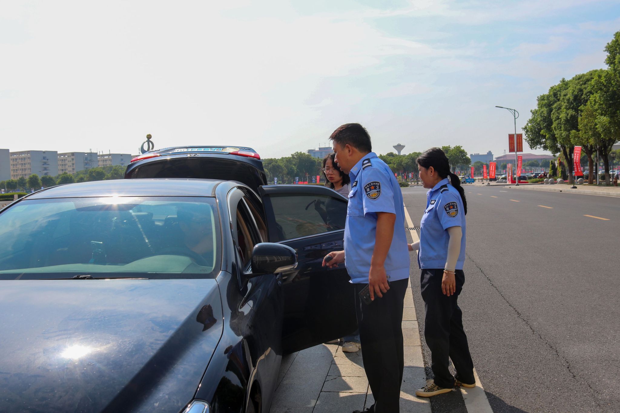 校园各处的安全防线由保卫处工作人员牢牢筑牢,他们值守在学校大门、霓裳宫广场、西区通道口等关键点位,一边维护现场秩序、疏导往来车流,为携行李的新生与家长清晰指引报到路线;一边耐心解答通行疑问,用细致服务为迎新流程 “保驾护航”。与此同时,驻地民警也深入校园,以 “警民同心、反诈同行” 为主题开展宣传教育,通过讲解典型案例、普及防范知识,为同学们即将开启的校园生活筑起一道坚实的 “反诈屏障”。