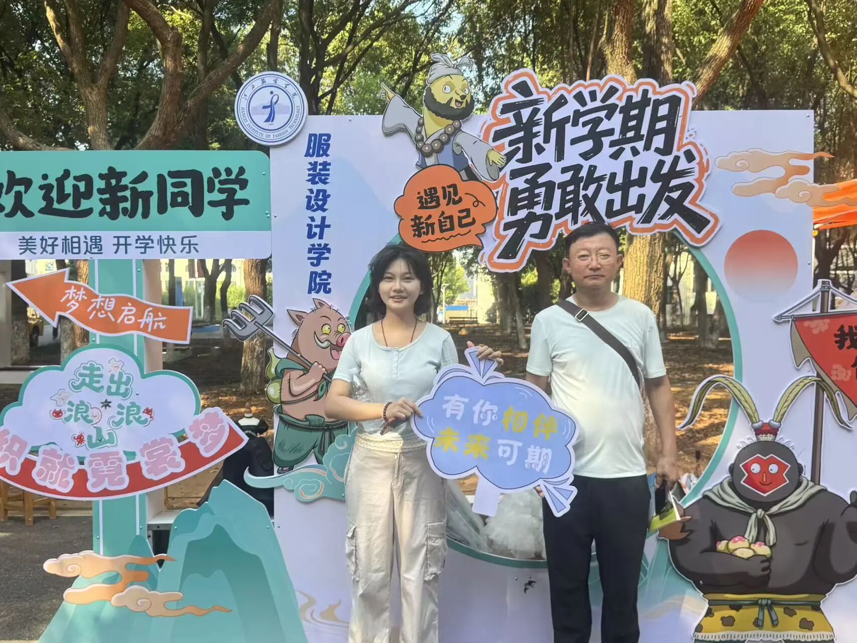 在江服专属拍照框前,萌新们扬起笑脸,定格“我与江西服装学院初相遇”的珍贵瞬间。