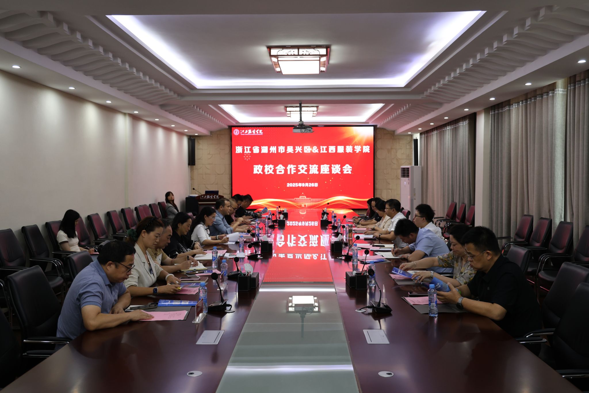 新闻中心讯(文字/丁晗艺 图片/万强)9月26日上午,江西服装学院与浙江省湖州市吴兴区合作交流座谈会在该校行政楼二楼会议室举行,同期 “职引未来,筑梦吴兴” 湖州市吴兴区产业集群专场招聘会同步开展。此次活动是吴兴区第二次组团到访江西服装学院,旨在进一步推动双方人才资源与区域产业优势深度融合,续写校地企合作新篇章。