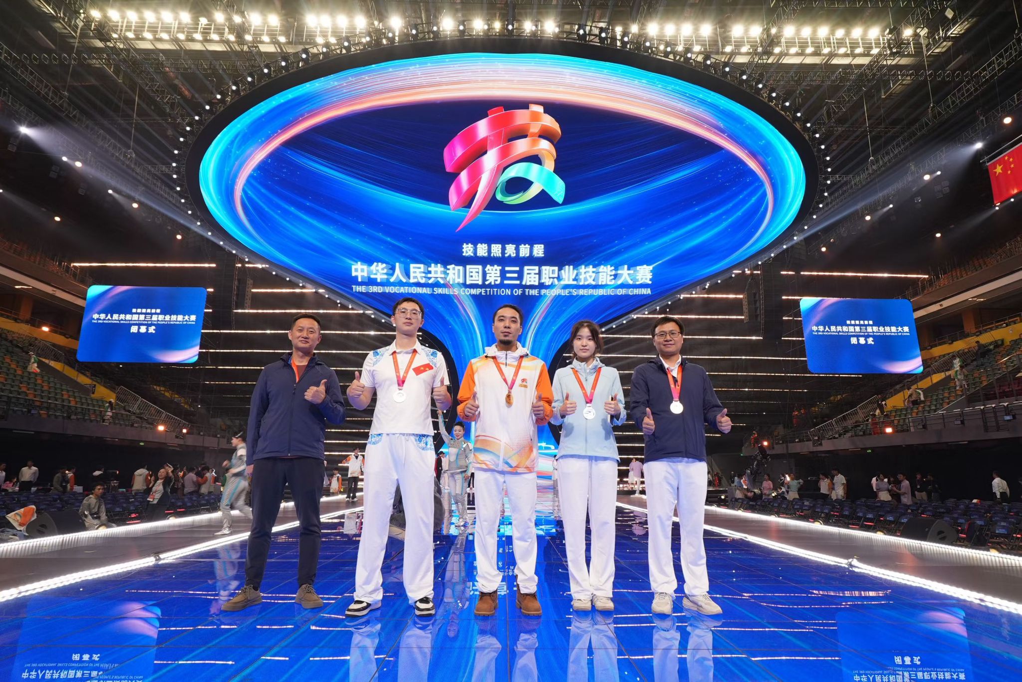 全国职业技能大赛是经国务院批准、人力资源社会保障部主办的综合性国家职业技能赛事,是我国赛事规格最高、竞赛项目最多、参赛规模最大、影响范围最广的综合性国家职业技能赛事。本届大赛汇聚了全国35个代表团的3420名各技能领域顶尖人才围绕106个竞赛项目同台竞技,竞争异常激烈。其中,漆艺制作作为传承中华优秀传统文化的重要项目,对选手的技艺熟练度、文化理解度及创新能力均有着极高要求。本次竞赛试题是以仰韶文化“白衣彩陶钵”为型制进行文创作品的创新设计和制作,重点比拼的是选手在传统漆器工艺与创新设计融合等方面的综合能力。备赛期间,吴先尧老师始终秉持精益求精的态度,深耕漆艺技法钻研,从漆料调配、胎体制作、纹样设计到髹涂打磨,每一个环节都反复打磨、不断精进,力求将传统漆艺与现代审美完美融合。吴先尧老师的这枚金牌,不仅是个人技艺水平的极致体现,也是江西服装学院长期以服务国家职业教育发展与地方产业升级为导向,高质量推进 “三院联动”人才培养模式改革、深化育人实践成果的又一有力佐证。