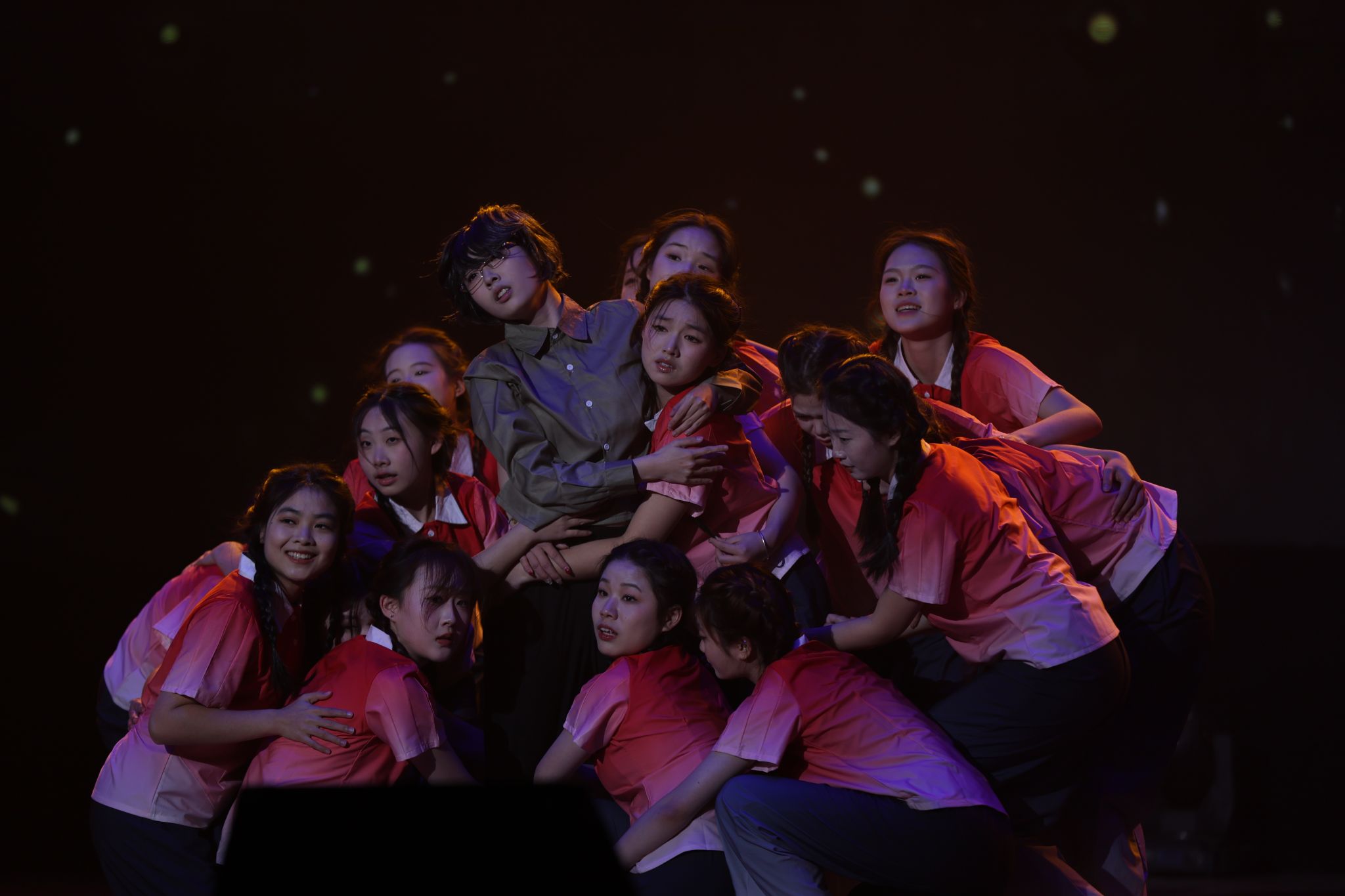 第三篇章“青春挺膺筑梦中华”彰显青年担当与奋斗精神。歌曲串烧《岁月流声》如时光穿梭机,带领观众重温岁月记忆,引发强烈情感共鸣;民乐小合奏《晋城往事》丝竹悠扬,缓缓诉说尘封的历史往事;舞蹈《我的妈妈叫桂梅》以舞传情,通过细腻的肢体语言诠释奉献与坚守的精神,向“燃灯者”张桂梅深情致敬;朗诵《青春报告》字句铿锵、掷地有声,既是青年的成长宣言,也是对时代的深情回应;歌舞《我们的歌》作为篇章收尾,师生们以嘹亮歌声唱响青春理想,以灵动舞步奔赴崭新未来,将现场氛围推向顶点。