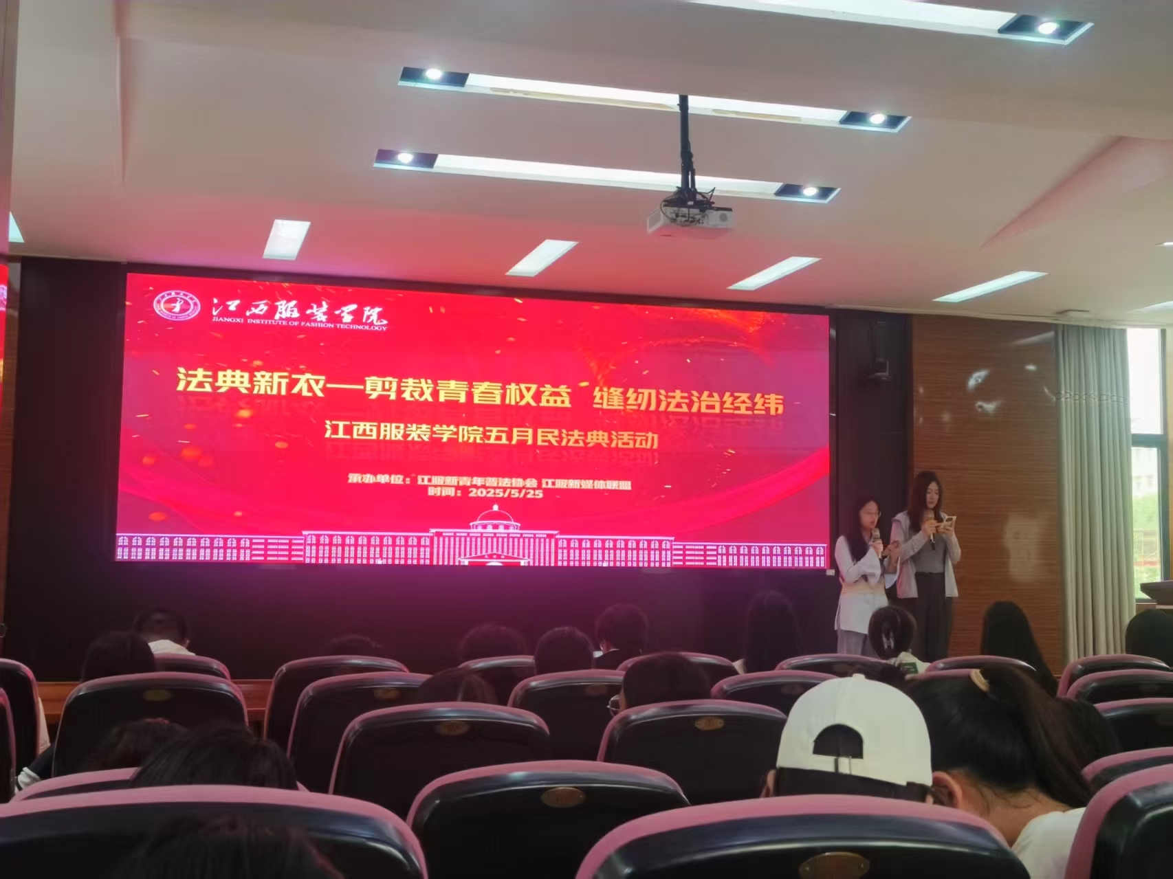 新闻中心讯(文/何淑颖 素材供稿/江服新青年普法协会、服装设计学院、服装工程学院、艺术设计学院)12月4日是我国第十二个国家宪法日。为深入学习贯彻习近平法治思想,弘扬宪法精神,增强师生法治观念,江西服装学院江服新青年普法协会第二届“宪法晨读+宣誓”品牌活动在主教学楼前广场举行,正式拉开了“学宪于心,践宪于行”宪法宣传周系列活动的帷幕。活动由校党委宣传部、校团委指导,江服新青年普法协会承办,各学院普法分会协办,旨在营造尊崇宪法、学习宪法、遵守宪法、维护宪法、运用宪法的浓厚校园氛围,彰显学校依法治校的坚实步伐。
