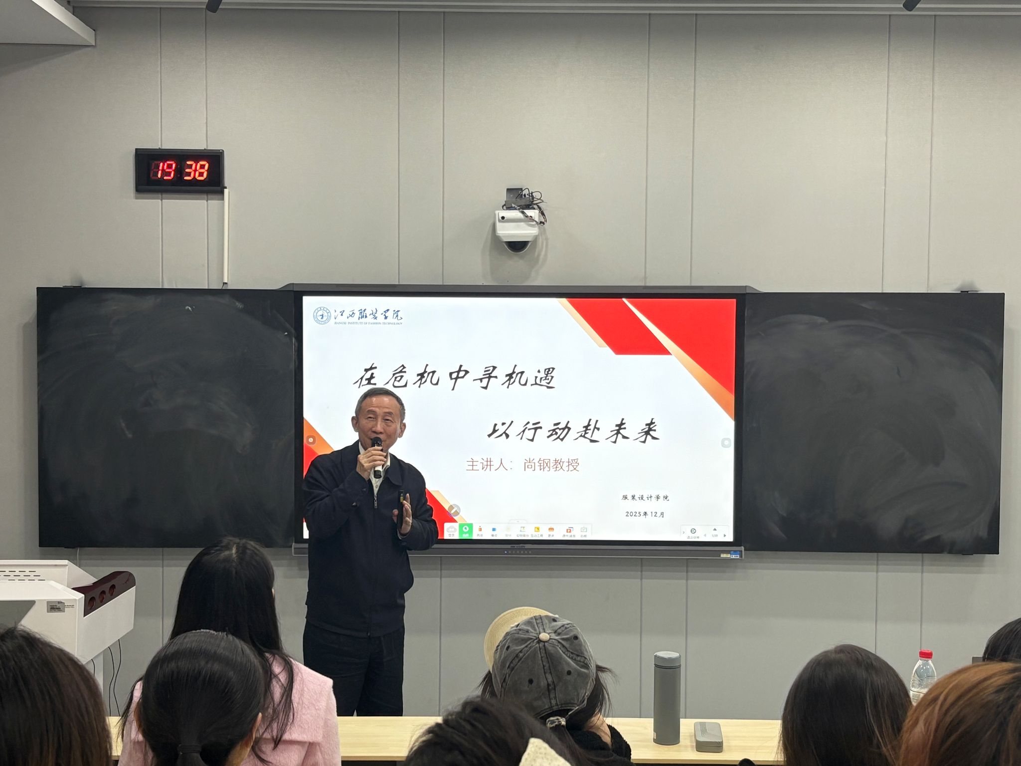 尚钢立足宏观就业形势与行业发展规律,为毕业生开展就业指导。他指出,服装设计作为文化创意产业的核心组成部分,在国潮崛起、绿色转型、数字化革新的时代背景下,催生了汉服设计、非遗纹样创新应用、数字化打版等多元新兴职业与岗位,行业发展前景广阔、潜力巨大。针对“学历通胀”带来的竞争压力,尚钢结合学校“做人做事‘八善’”理念提出具体指导:一要践行“善小事”理念,摒弃“眼高手低”的浮躁心态,从设计助理、样衣跟单等基础岗位积累实战经验,充分借助学院与本地服饰企业的实习留用通道,切实提升就业竞争力;二要践行“善求变”理念,紧跟行业发展潮流,强化AI设计工具应用、跨境电商服饰运营等复合技能,不断拓宽职业发展边界;三要践行“善当下”理念,锚定长远职业目标,平衡当下积累与长远规划,以沉稳心态深耕专业、校准方向,在脚踏实地中缓解焦虑,在清晰规划中稳步靠近职业理想,为长远发展筑牢坚实根基。