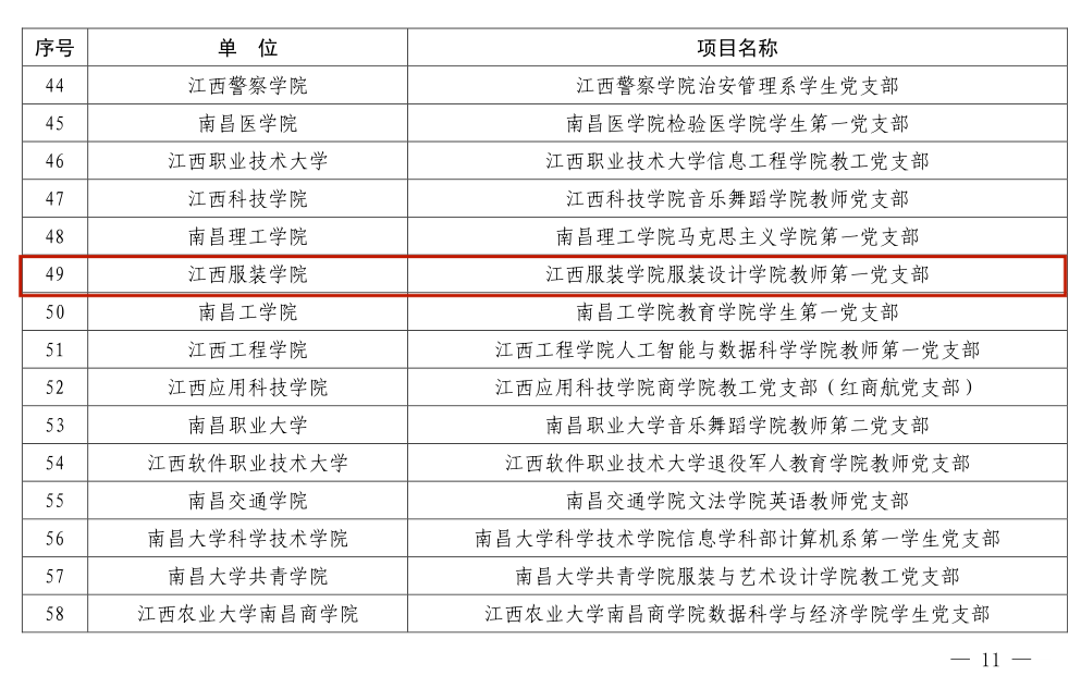 经资格审查、专家评审、会议审议、结果公示等环节严格遴选,我校艺术设计学院党委入选“全省党建工作标杆院系”,服装设计学院教师第一党支部获批“全省党建工作样板支部”。
