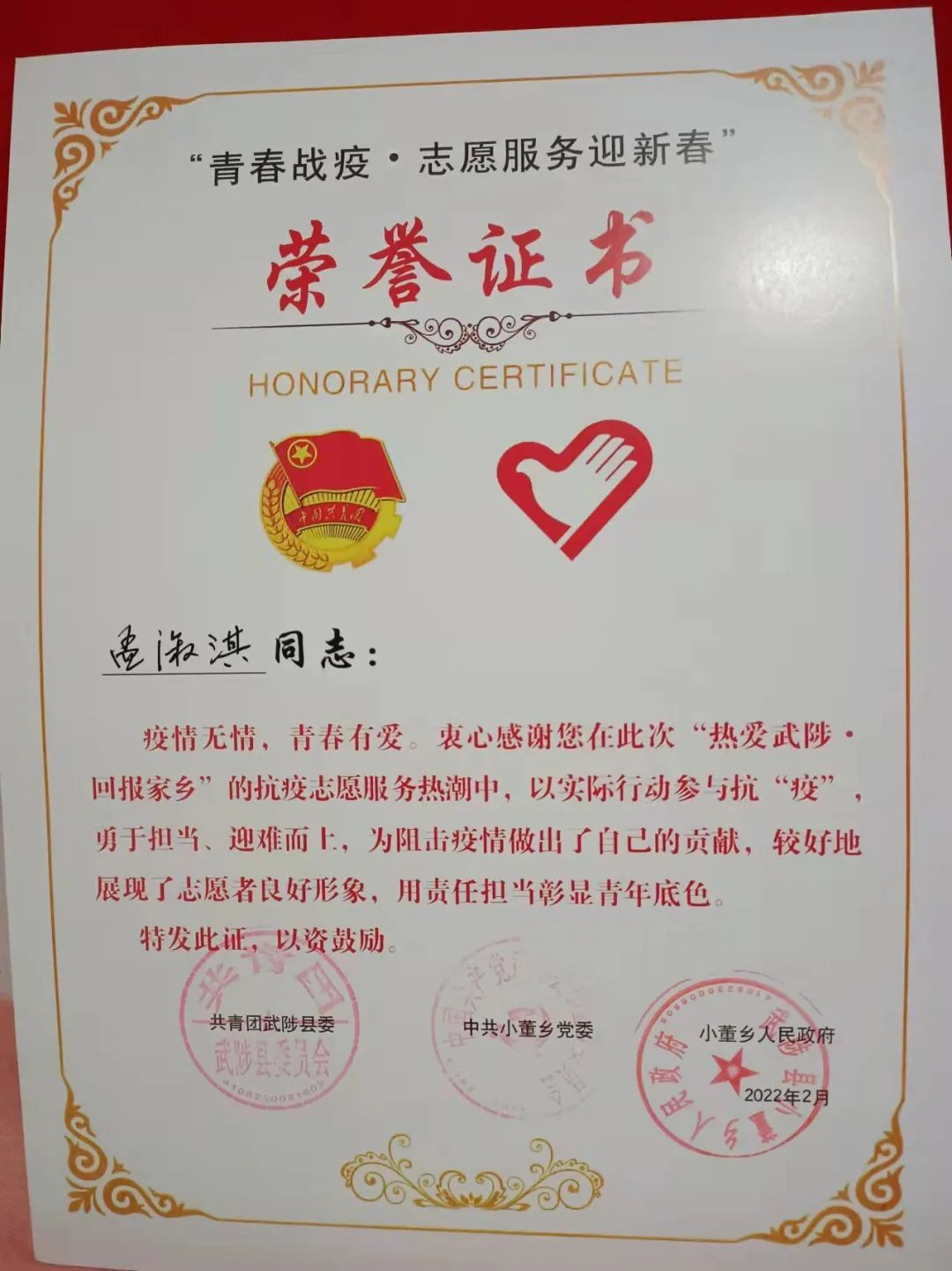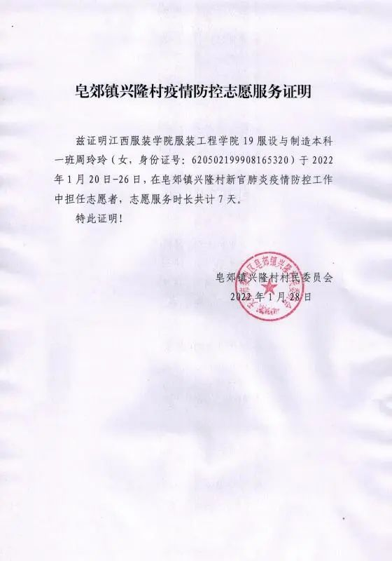 服装工程学院讯(撰稿 许诺)2022年寒假期间,新冠疫情又一次出现了反弹,服工学子回到家乡后,积极参与社会实践活动,争做家乡疫情防控志愿者,诸多学子受到了当地社区的表扬。