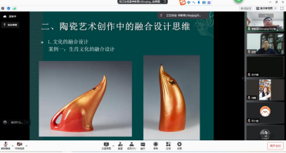 李新青教授从陶瓷艺术创作中的融合设计思维角度,进行了学术报告,围绕陶瓷作品中的跨界融合进行案例分析,重现作品创作的心路历程,展现诗与陶瓷艺术的完美融合,实现意境与心境的融合表达。他认为艺术设计学院可以充分运用江西服装学院的服装教育特色,将服装和陶艺进行有机结合,期待碰撞出新的火花。