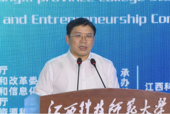 省教育厅厅长郭杰忠在讲话中首先代表省委教育工委、省教育厅对我省成功承办第七届中国国际“互联网+”大学生创新创业大赛,及取得的优异成绩表示祝贺!他说,2021年是建党百年。在教育部大力支持下,在省委省政府高位推动下,第七届中国国际“互联网+”大学生创新创业大赛在南昌大学成功举行,江西取得24金、位列全国第三的好成绩,东道主南昌大学荣获决赛冠军。通过此次大赛,增强了我省大学生的创新创业意识,有力推动和促进了我省高校创新创业教育的发展,强化了全省高校推进创新创业教育改革的信心。