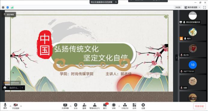为提高班级学生干部的职业化水平,充分发挥班级学生干部在学生自我管理、自我教育、自我服务中的骨干作用,引导学生树立正确的世界观、人生观和价值观。2022年3月30日—4月6日,时尚传媒学院通过线上的的方式分年级开展“班长讲主题班会课”初赛活动。