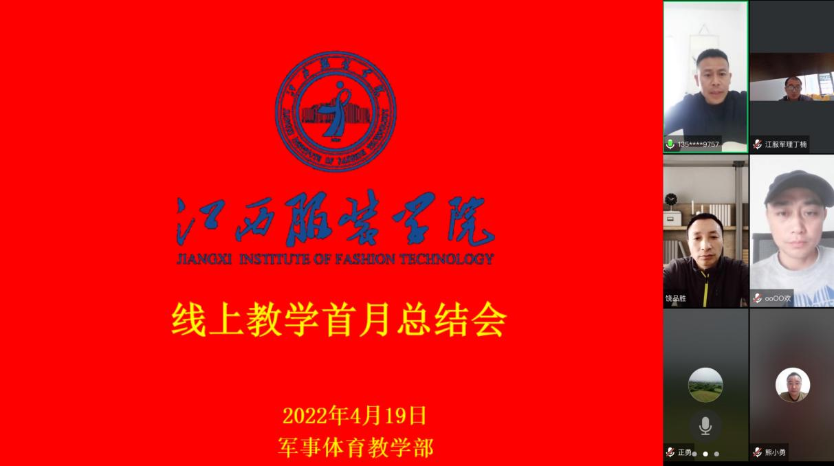 【军体部讯】为及时分析和总结近期部门疫情防控和线上教学开展情况,部署安排下一阶段重点工作,2022年4月19日,军事体育教学部通过腾讯会议平台召开线上教学首月总结会议,部门全体教师参加会议。会议由军事体育教学部主任胡伟主持。