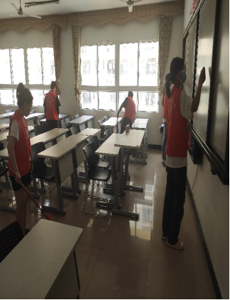 离别日,感恩情,毕业生同学拿起扫帚来行动。带领学弟学妹动手打扫班级,清理好教室的每一处角落。用一尘不染告别与我们共度几载冷暖的教室,用焕然一新挥别与我们走过几年岁月的桌椅;用窗明几净辞别与我们相守几度春秋的窗台,用自己的行动向学弟学妹们作出表率!毕业生们都热情澎湃,精力充沛的投身到爱校荣校活动中,积极打扫教学楼教室的环境卫生。旨在创造一个良好的学习环境,向学弟学妹们传递一种吃苦耐劳、知足感恩的精神力量。