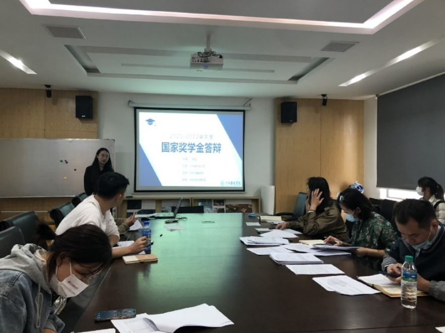为进一步规范国家奖学金评审工作,激励广大学生勤奋进取、刻苦钻研、全面发展,发挥优秀学生的榜样示范作用和奖学金的激励作用,10月9日中午,时尚传媒学院在清源2栋学院会议室举行了2021-2022学年国家奖学金评选答辩会,时尚传媒学院院长甘文,党总支副书记黄朝辉、副院长蔺丽、副院长李有为、院长助理阳石刚等老师及学生代表出席此次答辩会并担任评委。