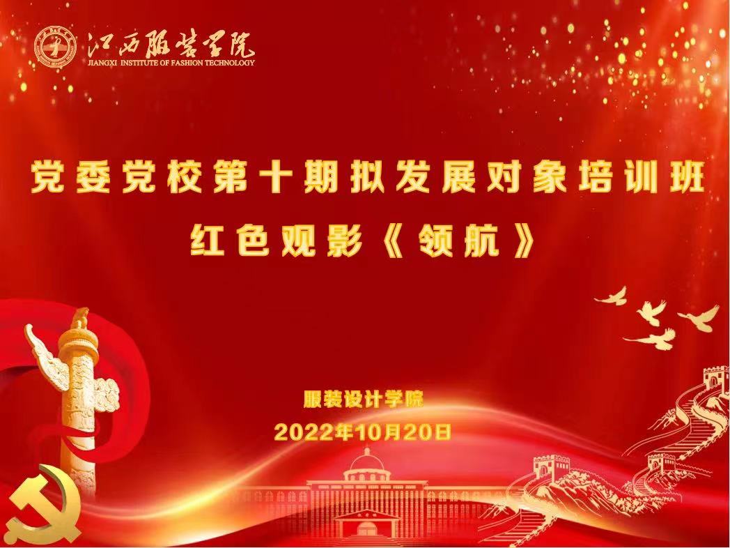 为深入学习贯彻习近平新时代中国特色社会主义思想,学习贯彻党的二十大精神,进一步加强培训班学员的信仰教育,端正入党动机。2022年10月20日晚,服装设计学院党总支组织第十期拟发展对象于清河九栋104党建活动室观看红色经典纪录片《领航》。学生第二党支部书记唐昌华老师、学院第十期拟发展对象培训班全体学员参加此次观影活动。《领航》聚焦展现以习近平同志为核心的党中央团结带领全党全国各族人民在新时代走过的非凡壮阔历程,展现习近平新时代中国特色社会主义思想在新时代伟大实践中彰显的强大真理力量,全面反映了党的十八大以来党和国家事业取得的历史性成就、发生的历史性变革,生动形象的呈现了新时代人民群众的幸福美好生活和良好精神风貌。