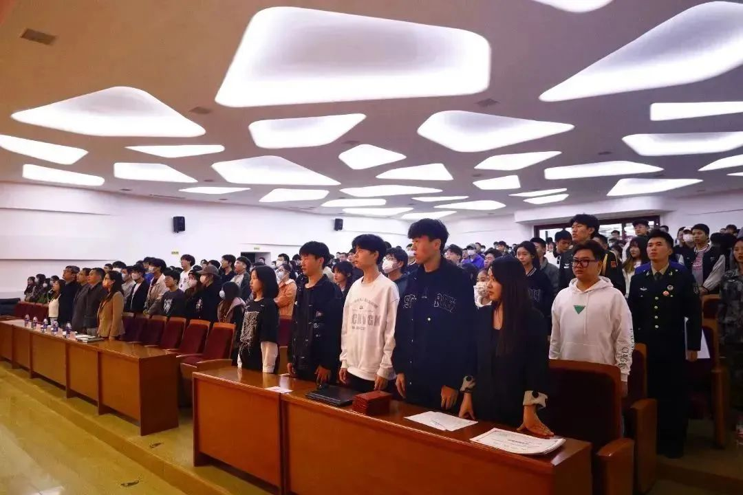 【时尚传媒学院讯李竹新撰稿】泱泱千年华夏,巍巍百年政党。为庆祝党的二十大胜利召开,培育具有凝聚强国强军意识的新时代青年。江西服装学院时尚传媒学院分团委学生会于2022年11月13日下午7:00在思贤楼召开“青春献礼二十大,爱我国防展风采”主题演讲比赛暨2023年征兵动员大会。校党委学生工作部部长邓良峰、时尚传媒学院党总支副书记黄朝辉、校武装部征兵办公室副主任胡康、时尚传媒学院党总支专职组织员康艳红、第二学生党支部书记龚俊敏出席本次大赛并担任评委。
