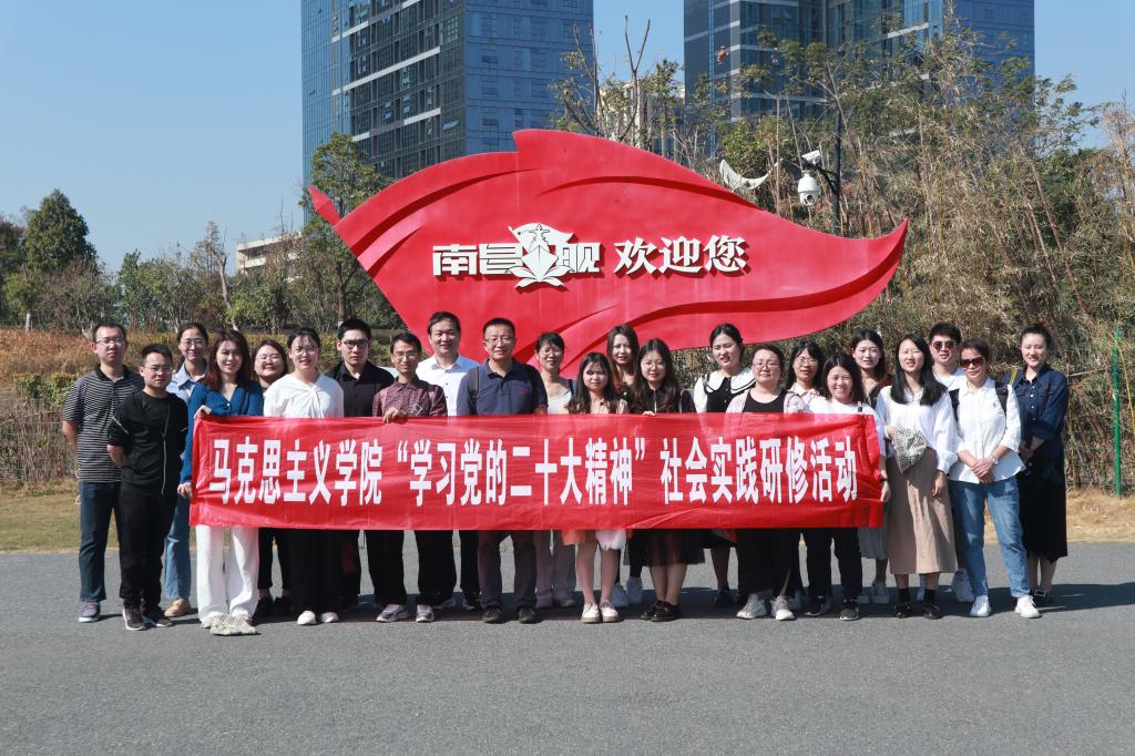 新闻中心讯(马克思主义学院 陈洋安供稿)为更好地帮助思政课教师深入学习贯彻党的二十大精神,更好地将理论教学与实践教学相结合,全面推动习近平新时代中国特色社会主义思想在江西的生动实践成果进教材、进课堂、进头脑,持续深化新时代高校思想政治理论课改革创新,大力建设一支政治强、情怀深、思维新、视野广、自律严、人格正的思政课教师队伍,11月12日,马克思主义学院组织思政课教师赴南昌舰、小平小道开展“学习党的二十大精神”社会实践研修活动。