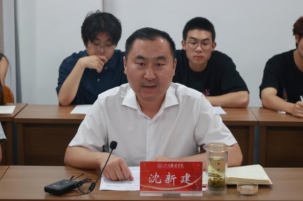 校党委委员、党委宣传部部长沈新建在讲话中对近期宣传工作取得的成绩表示充分肯定,并对全体学生干部的辛勤付出表示感谢。他指出新形势下宣传思想工作的重要性,要求全体学生干部要在思想认识方面统一思想、凝聚力量,做到“五个要”:一是要顺大势,要把握顺应时代发展的趋势,不断探索前行的道路;二是要立大志,树立远大理想信念,有责任、有担当,报效祖国和社会;三是要明大德,修善其身,自觉树立和践行社会主义核心价值观,树立正确的世界观、人生观、价值观;四是要成大才,要自觉加强学习,勇于探索,敢于实践,求真学问、练真本领;五是要担大任,要坚定理想信念,强化责任担当,争做时代先锋。并就进一步做好学校宣传思想工作提出了具体要求:第一是共享各类素材,特别是共享具有创意的宣传素材,要通过多平台联动报道;第二是加强各部门工作间沟通交流与合作,形成工作合力,切实提高学校宣传思想工作的质量和实效;第三是积极参加校内外各类志愿服务活动,通过共同的目标,形成荣耀共担的思想基础,实现1+1>2的工作成效。