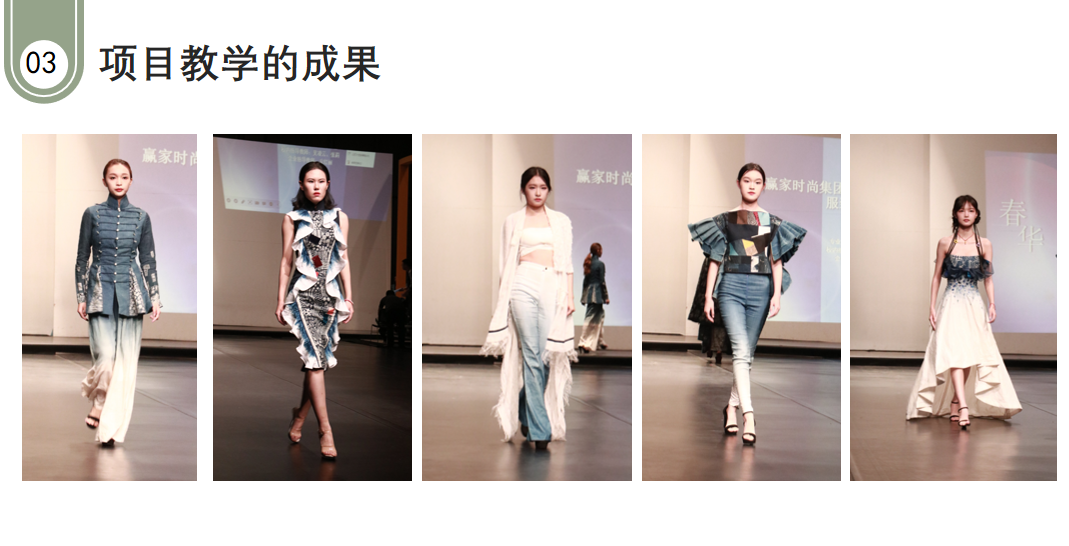 女装项目2班以赢家时尚集团旗下FUUNNY FEELLN(仿佛)品牌为背景,结合该品牌文化理念及设计研发特色,产教融合。项目内容包括设计、产品成型和项目评审三个模块,以市场调研、趋势分析、产品企划设计、服装结构工艺、面辅料选配、项目作品册等内容形成一整套企业产品开发的项目操作过程。通过学习,使学生提高基本理论、基本知识和基本技能,培养学生具备工程意识、创新思维、团队合作精神、职业规范及综合实践能力。教学上采用多学科内容的融合、产教融合上企业与课堂结合。