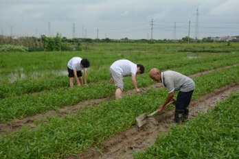 在田间劳作的过程中,和村民边交流边干活,有说有笑,村民们在干活中收获了很多快乐,似乎干活都不累了。队员们走上地头,体验农事,干起农活,插秧、浇灌、栽种、拔草…尽管队员们脚上和裤子上溅满了泥,汗流浃背,在一次一次地弯腰抬头中,同学们感受到了劳动带来的苦乐交织,也留下了难忘的记忆与感受,却依然认真地在田地里劳作着,从不抱怨,丝毫不懈怠。