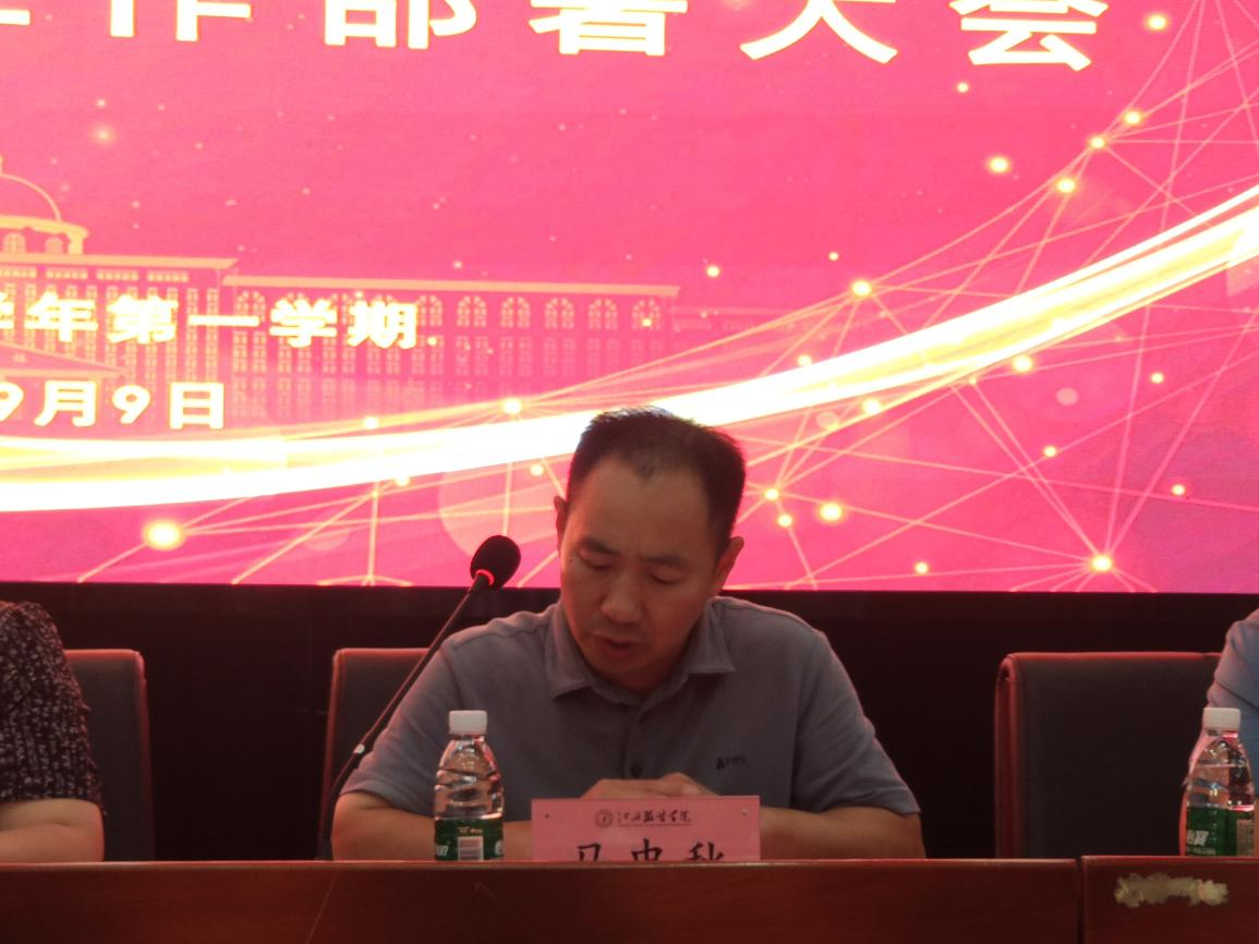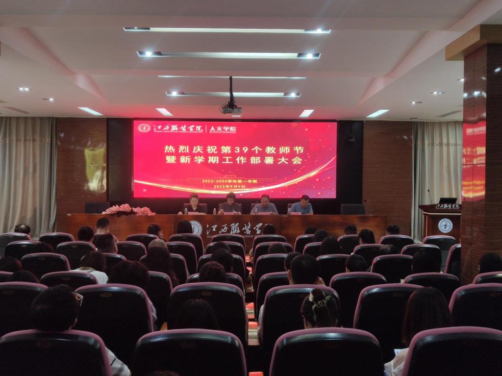 【人文学院讯肖清波撰稿】在教师节即将到来之际,我院为热烈庆祝第39个教师节同时对新学期工作进行梳理,于2023年9月9日13:30在行政楼一楼报告厅召开热烈庆祝第39个教师节暨新学期工作部署大会,学院领导班子及全体教职员工参加了本次会议,会议由副院长付凌云主持。
