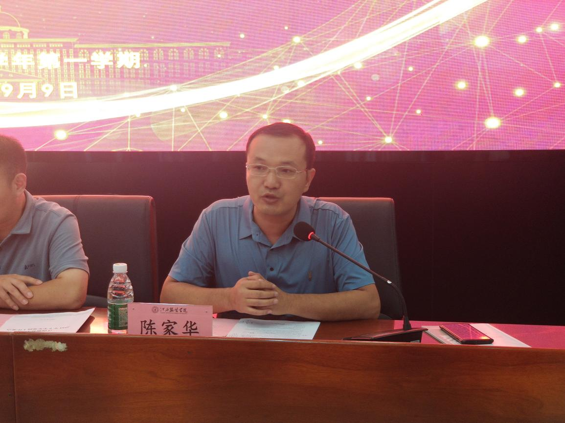 会议第二项由副院长付凌云对新学期开学准备工作进行部署,她首先传达了学校及教务处对开学初教学准备工作的有关要求,结合教学准备工作要求针对学院前期教学各项工作进行了部署,对教学工作中的“八个到位,六个必须”逐条进行解读,同时强调为保障11日开学第一堂课的顺利进行,要求任课教师务必提前对教学仪器设备进行调试,提前与班级联系确认上课地点,同时对实验实训场所的使用做进一步要求。