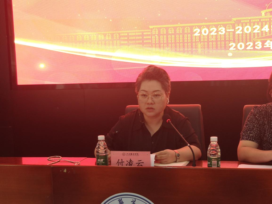 最后,她说到我们学院的产业学院已经初见规模,产业学院设计图也得到学校上级领导的认可,相关负责人也与企业完成了对接,做好了初步的协商,一切都在向好的方向进行。“百年大计、教育为本”,江服是一所特色鲜明的应用型本科高校,希望各位同仁将力量、梦想和希望注入日常教学管理工作中,助推学院高质量发展。