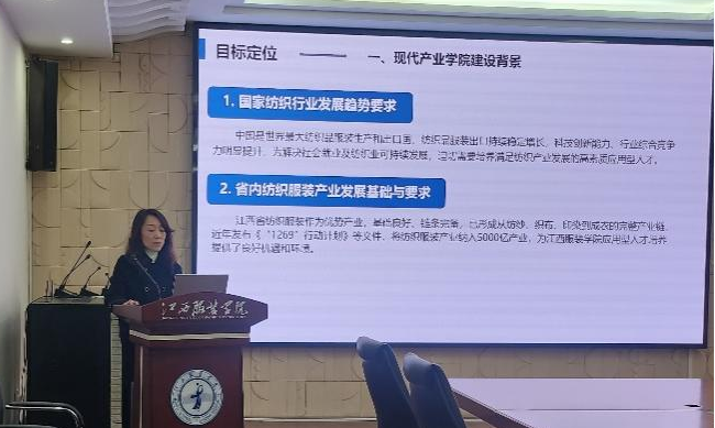理事会上,纺织服装现代产业学院副院长陈晓玲做产业学院的工作汇报及过去一年学院工作成果及未来发展规划。重点介绍了学校立足区域经济社会发展需求,对接“十强”产业,深化产教融合、校地合作,推进高水平应用型大学建设情况。产业学院建设是推进学校应用转型,培养应用型人才的重要抓手。近年来,学校高度重视产业学院建设,深入推动教育链、人才链、产业链、创新链的融合,形成共建共管共享育人机制。现代纺织服装产业学院是学校依托国家一流专业,与中国纺织工程学会、利郎(中国)有限公司、波司登国际控股有限公司、北京肇达·张服装设计院,赢家时装(赣州)有限公司等单位强强联手建设的学校首个“政行企校研”产业学院。纺织服装产业学院是政产学研深度融合、共赢发展的有益尝试。