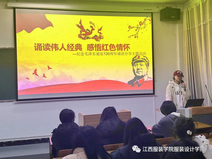 为纪念毛泽东同志130周年诞辰,让我们当代青年坚定文化自信,赓续中华文脉、推动中华优秀传统文化创造性转化和创新性发展,2023年12月7日下午19时,我院于主教楼609教室举行“诵读伟人经典 感悟红色精神”纪念毛泽东诞辰 130 周年主题活动,此次活动由学工办主任张敬玲、各班团支部及各班青年学生代表参加此次活动。