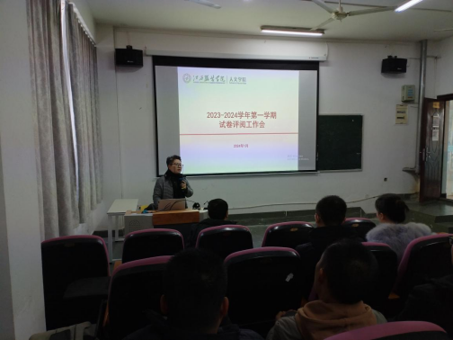 【人文学院讯肖清波撰稿】2023-2024学年第一学期期末考试工作已经完成,接下来将进入到课程阅卷环节,为保障阅卷工作顺利开展,2024年1月12日11:00,我院在主教学楼-110教室召开2023-2024学年第一学期期末阅卷工作会议,学院领导干部及全体教师出席本次会议,会议由副院长付凌云主持。