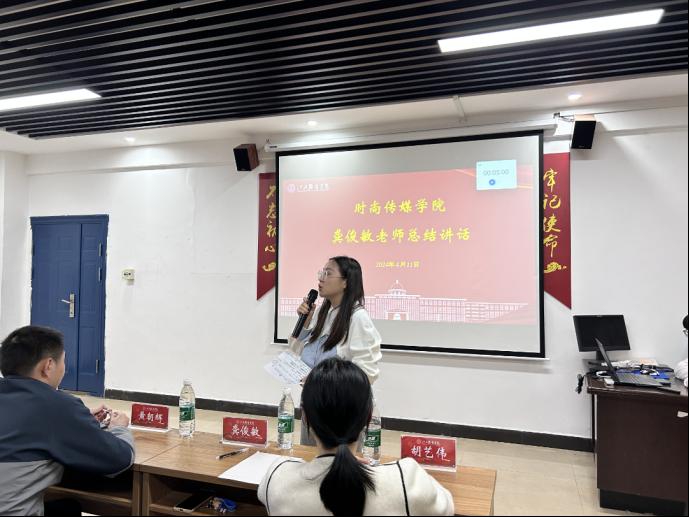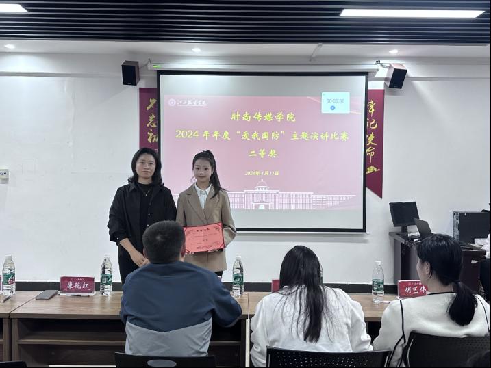 最后,由时尚传媒学院党委副书记黄朝辉同志进行总结讲话,黄朝辉副书记指出,本次比赛的成功举办,不仅锻炼了同学们的临场表现能力和表达能力,更彰显了当代大学生对于我国国防的态度,有利于更好地以青春之力为我国国防事业添砖加瓦。