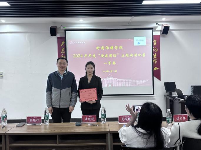 时尚传媒学院讯为深入学习贯彻习近平强军思想,推动新时代全民国防教育工作的深入普及。时尚传媒学院于2024年4月11日隆重举行“爱我国防”主题演讲比赛。参加此次比赛的领导老师分别有时尚传媒学院党委副书记黄朝辉老师,时尚传媒学院康红艳老师、胡艺伟老师、龚俊敏老师以及顾成龙同学担任评委。