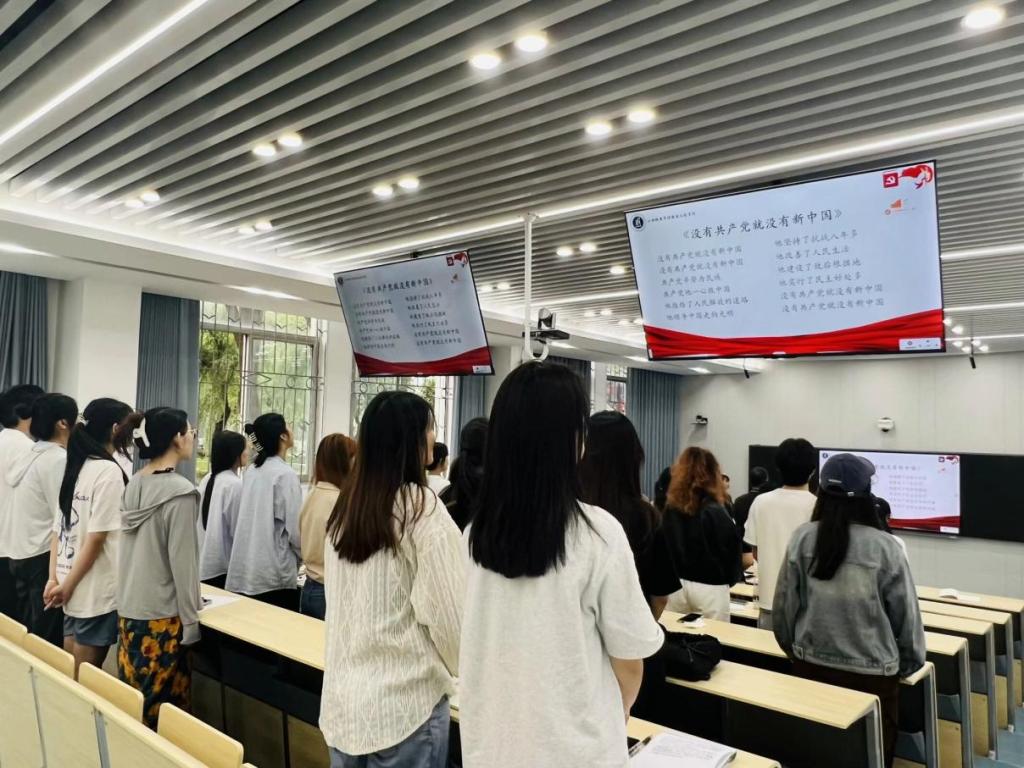 会议伊始,全体起立,齐唱《没有共产党就没有新中国》。