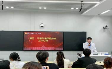 大会第二项,由班委联合会干事代表华俊进行了工作心得的分享。他说到,非常荣幸能够加入班委联合会这个大集体,以后将倍加珍惜这段宝贵的经历,继续努力提升自己,为今后的工作和发展奠定坚实的基础。