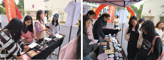 10月29日,我校在充满活力的双创街隆重举办了一场别开生面的创客交易活动。活动现场,一系列巧妙运用洪州青瓷纹样进行二次创作的文创产品璀璨亮相,它们不仅承载着深厚的历史文化底蕴,更以新颖独特的设计转化为了激发人们情感共鸣的又一载体,感染着每一位驻足观赏的人。