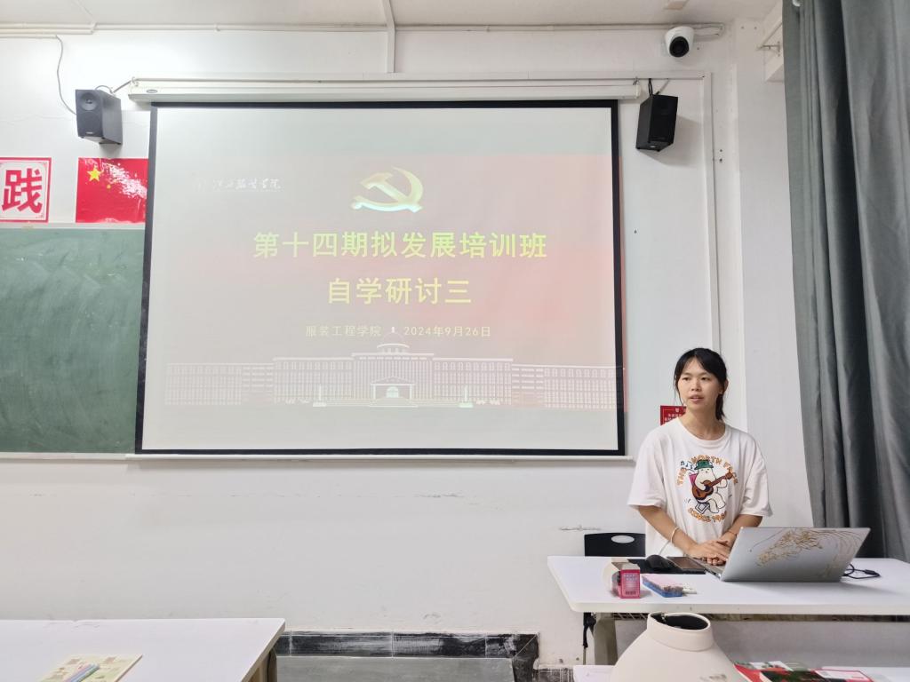 服装工程学院讯(撰稿:沈国庆)为进一步调动拟发展对象培训班学员的积极性,学习赣鄱先锋先进事迹,9月26日服装工程学院开展第十四期拟发展对象培训班学员第三次自学研讨。