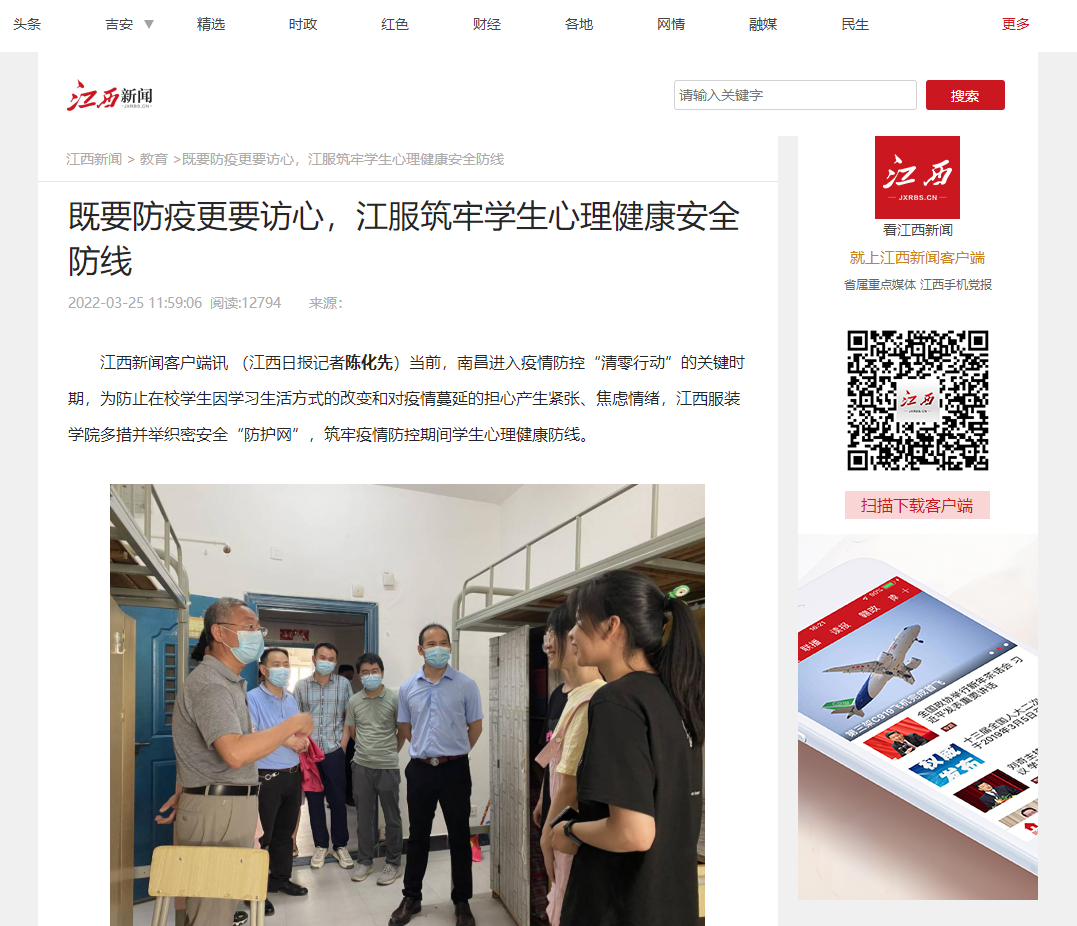 江西新闻:既要防疫更要访心,江服筑牢学生心理健康安全防线