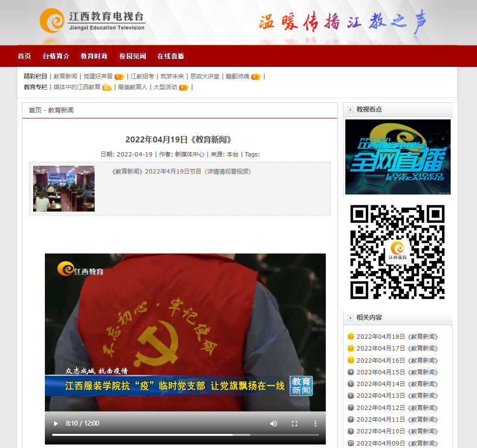 新闻链接:江西教育电视台:江西服装学院抗“疫”临时党支部 让党旗飘扬在一线