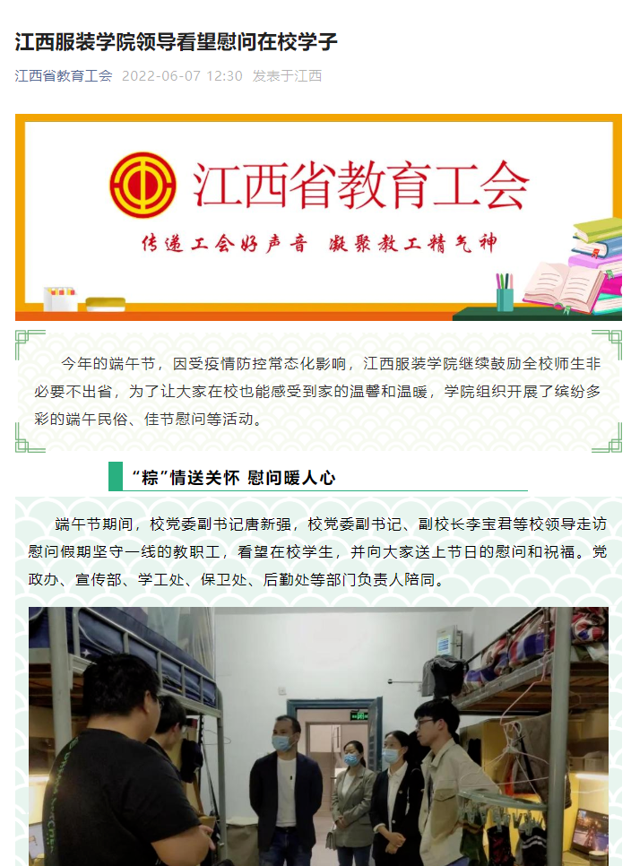 新闻链接:江西省教育工会:江西服装学院领导看望慰问在校学子