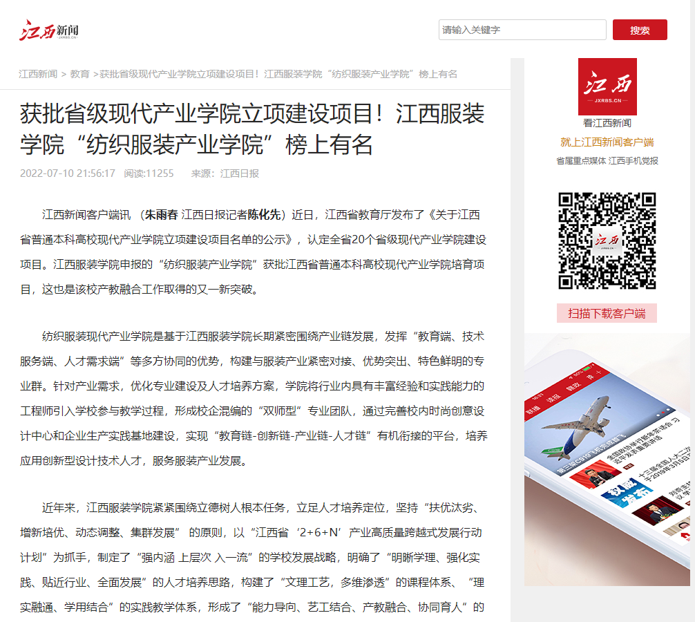 江西新闻:获批省级现代产业学院立项建设项目!江西服装学院“纺织服装产业学院”榜上有名