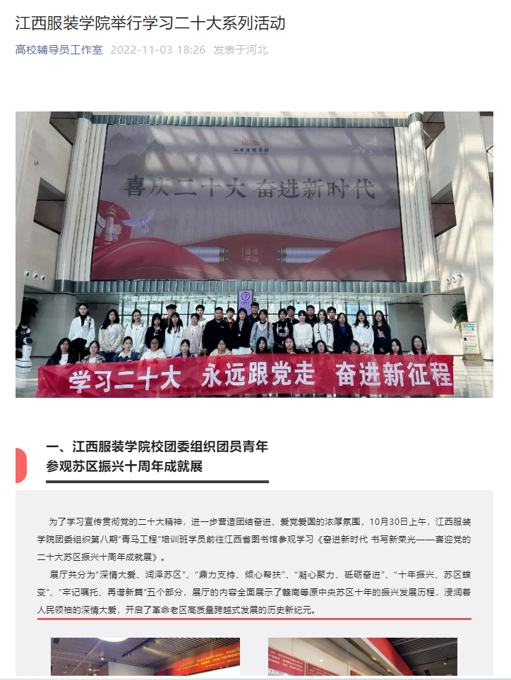 新闻链接:高校辅导员工作室:江西服装学院举行学习二十大系列活动