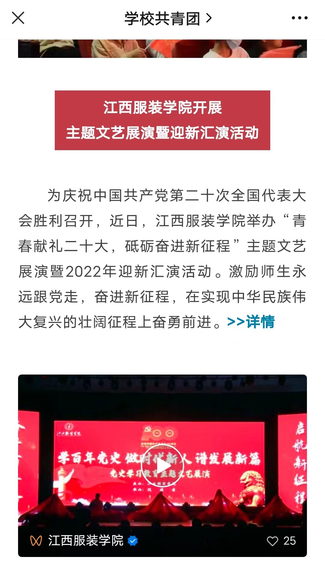 学校共青团:报道江西服装学院开展主题文艺展演暨迎新汇演活动