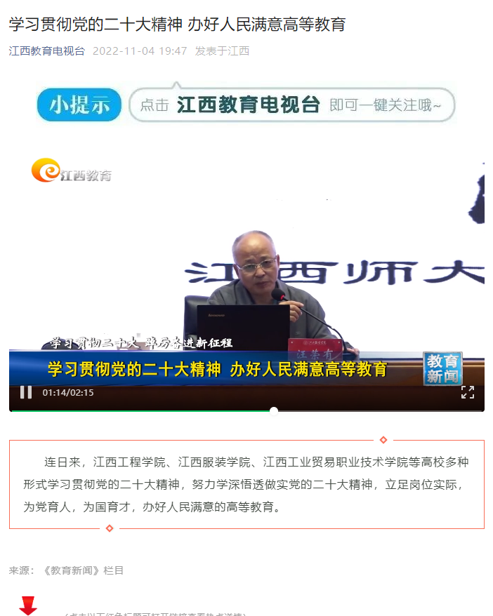 江西教育电视台:报道江西服装学院学习贯彻党的二十大精神 办好人民满意高等教育