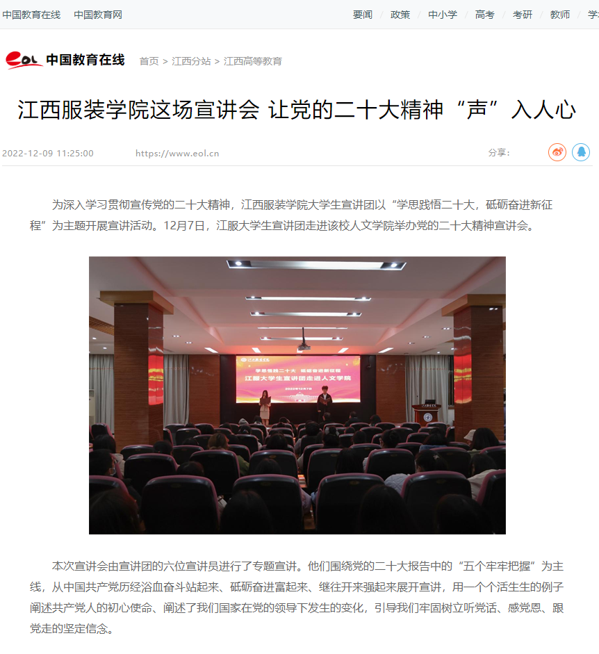 中国教育在线:江西服装学院这场宣讲会 让党的二十大精神“声”入人心