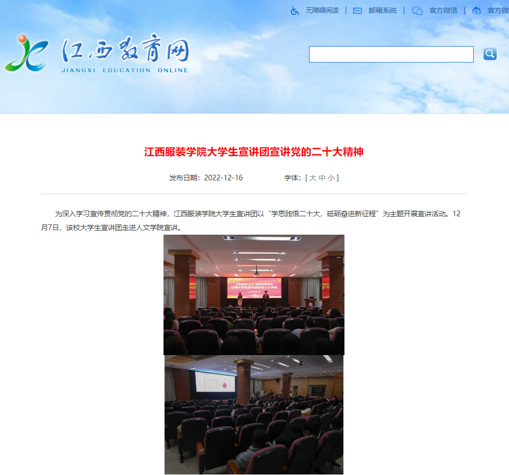 江西省教育厅官网:江西服装学院大学生宣讲团宣讲党的二十大精神