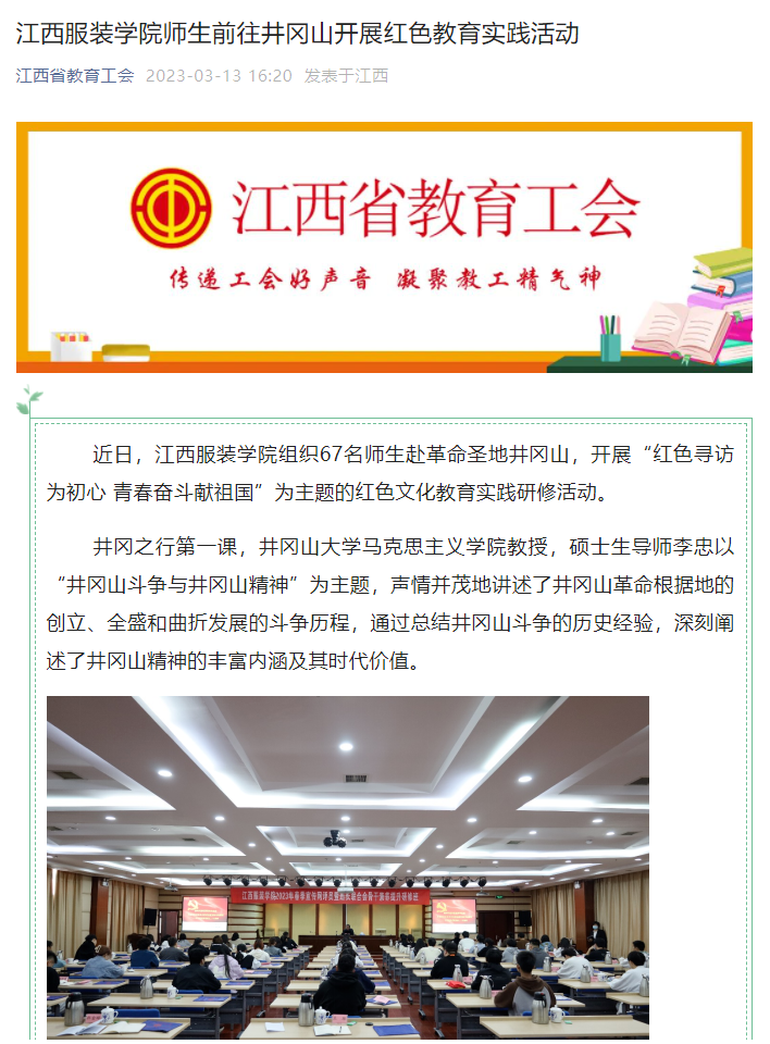 江西省教育工会:江西服装学院师生前往井冈山开展红色教育实践活动