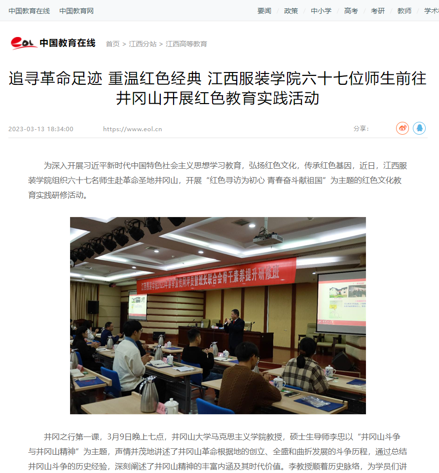 中国教育在线:追寻革命足迹 重温红色经典 江西服装学院六十七位师生前往井冈山开展红色教育实践活动