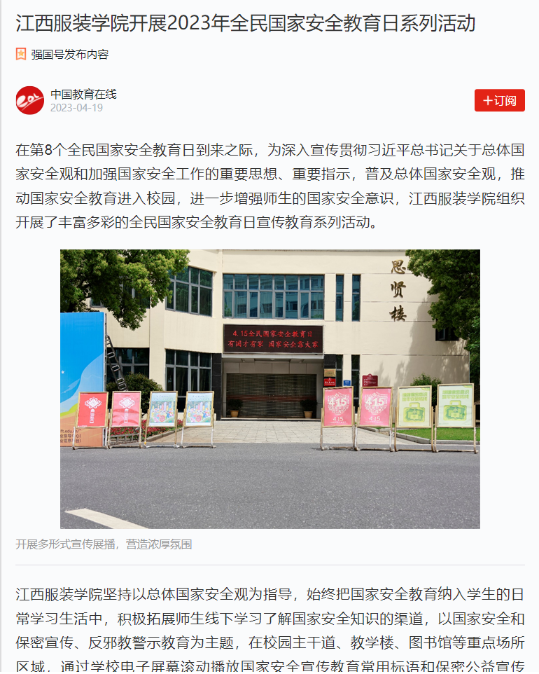 学习强国:江西服装学院开展2023年全民国家安全教育日系列活动