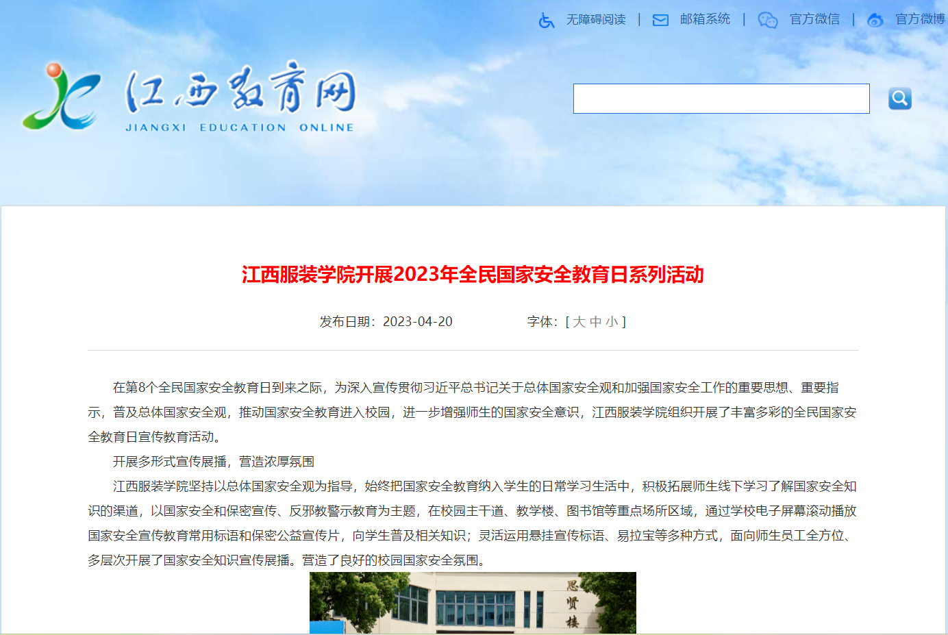 江西省教育厅官网:江西服装学院开展2023年全民国家安全教育日系列活动