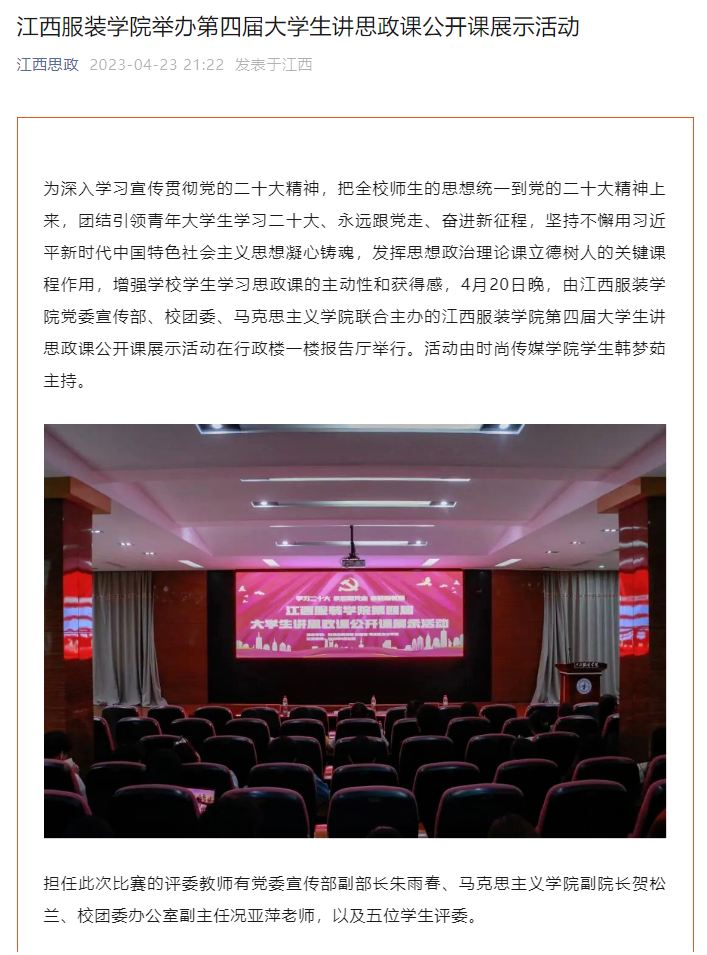 江西思政:江西服装学院举办第四届大学生讲思政课公开课展示活动