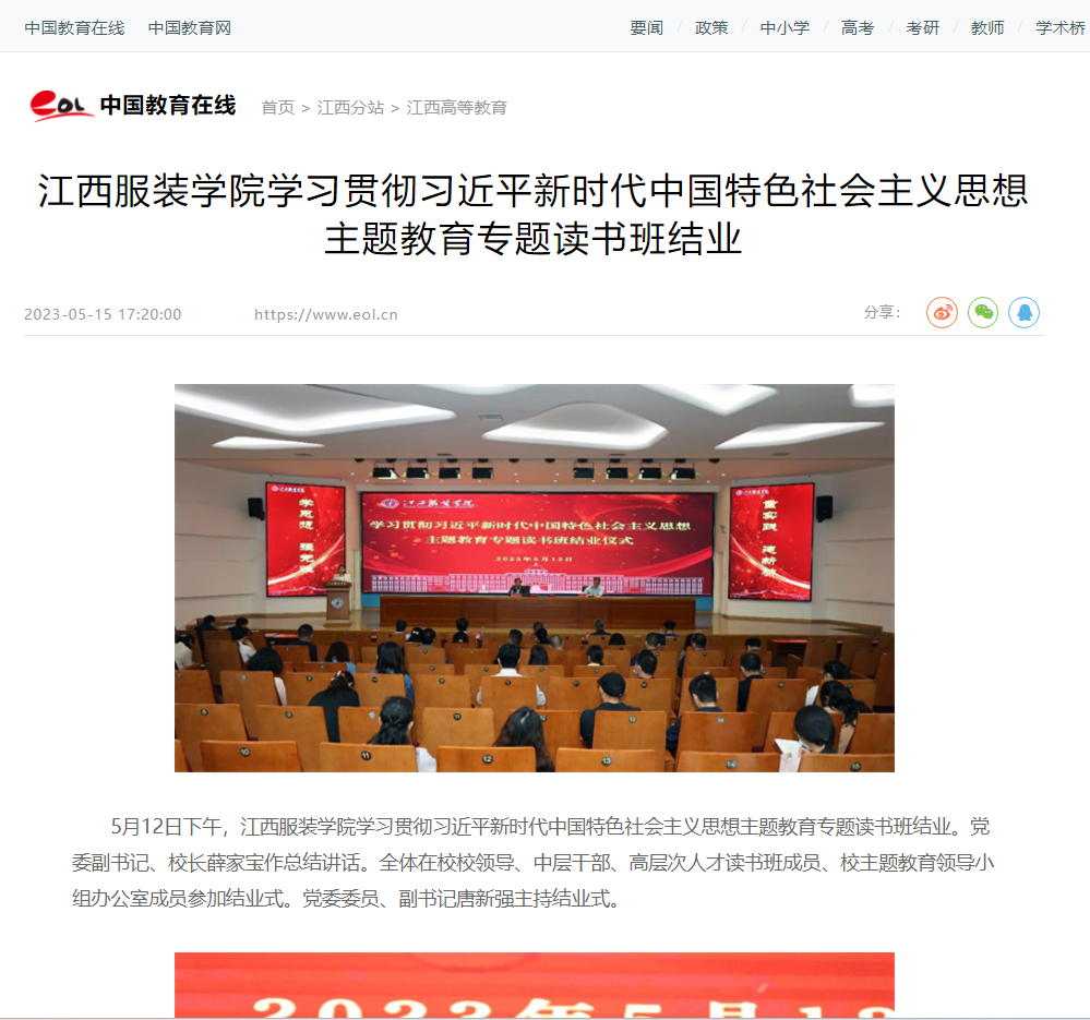 5月12日下午,江西服装学院学习贯彻习近平新时代中国特色社会主义思想主题教育专题读书班结业。党委副书记、校长薛家宝作总结讲话。全体在校校领导、中层干部、高层次人才读书班成员、校主题教育领导小组办公室成员参加结业式。党委委员、副书记唐新强主持结业式。