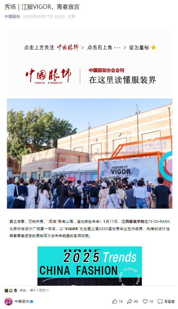 中国服饰对此进行了报道,以下为新闻链接: