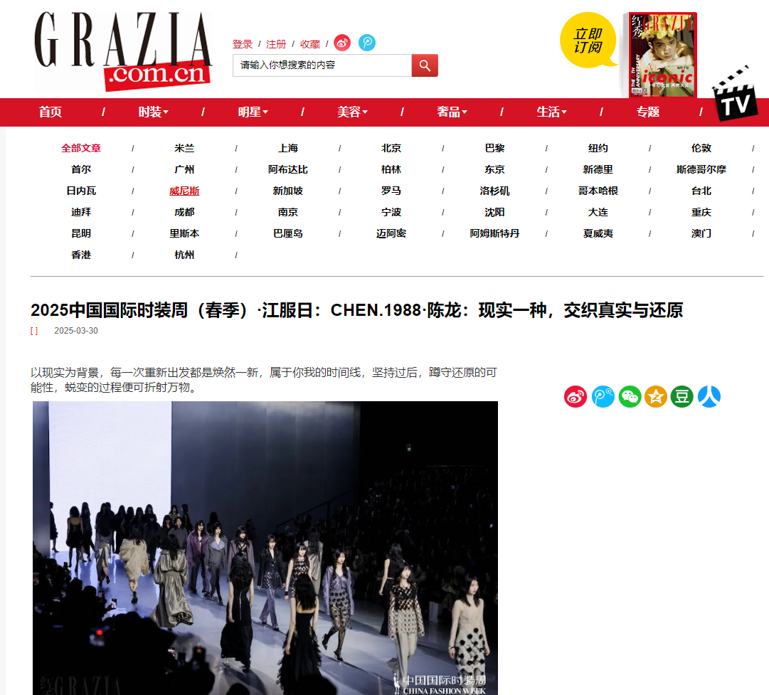 3月27日 19:30,作为2025中国国际时装周(春季)·江服日的重磅发布,CHEN.1988·陈龙以“现实一种”为主题发布2025AW系列,在北京798·751园区第一车间,金属质感的秀场中开启一场极尽现实又极具空间的女装对话。熟悉的平台,可折射万象,冷峻的色调中有水到渠成的蜕变,沉淀了独属品牌辨识度的结构性剪裁,精准但柔和。精益求精但始终自由,以此回馈所有人的期盼。